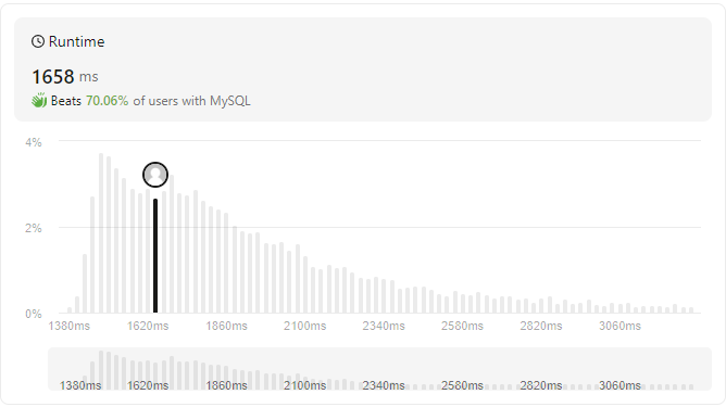 - 1658ms 약 상위 30%로 꽤 빠른 쿼리다